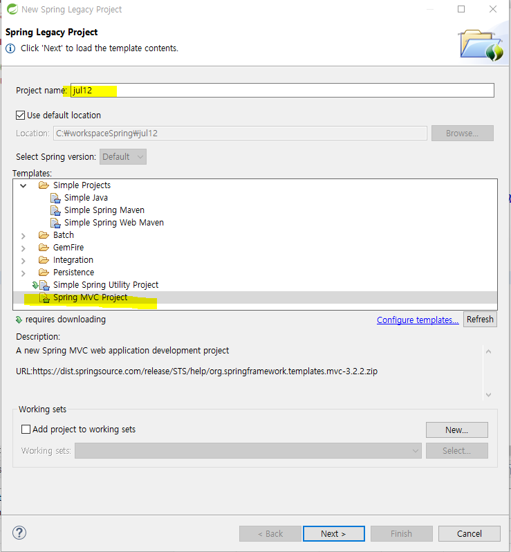 jul12에서 마우스 우클릭- new에 보면 두종류의 project가 있는데