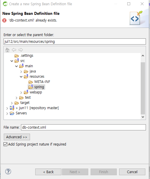 db-context에서 classpath 를 calsspath로 써서 500번 오류났었음 ㅠㅠ