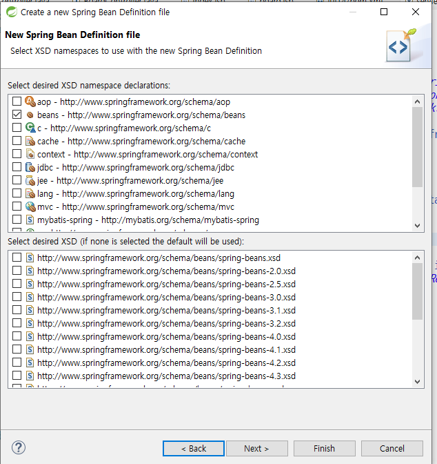 spring폴더에 xml 파일 만들건데 요렇게 선택해서