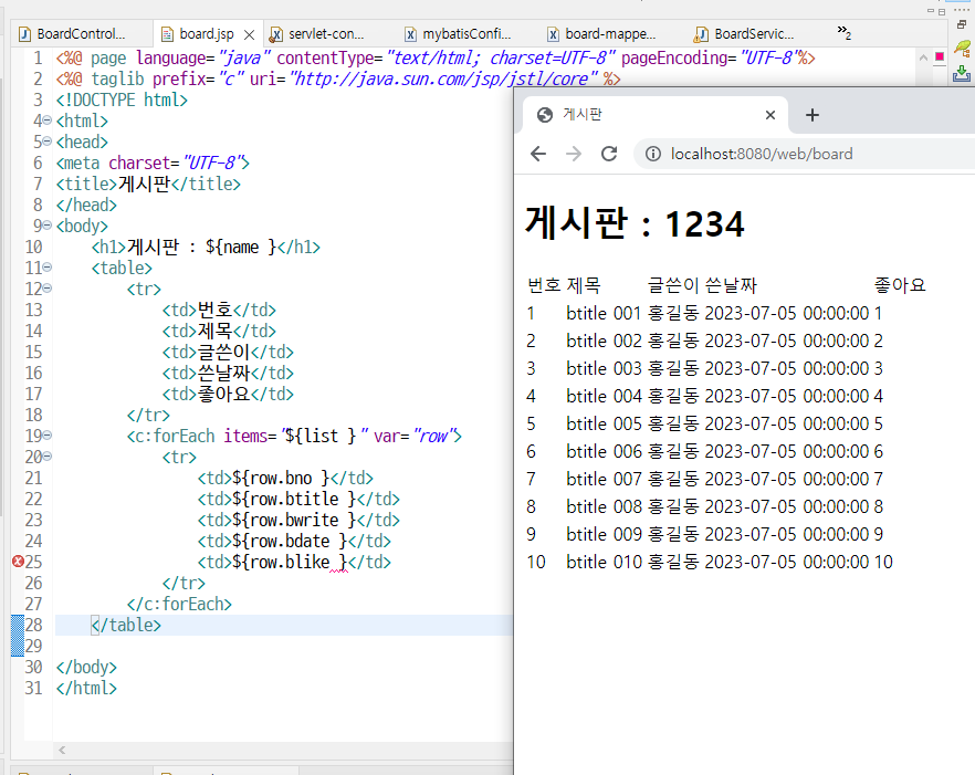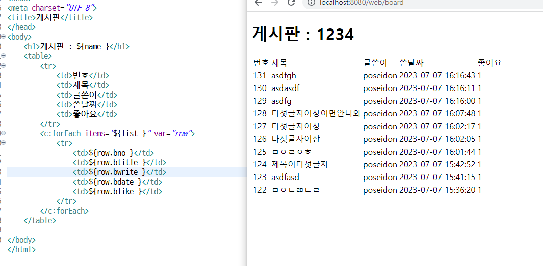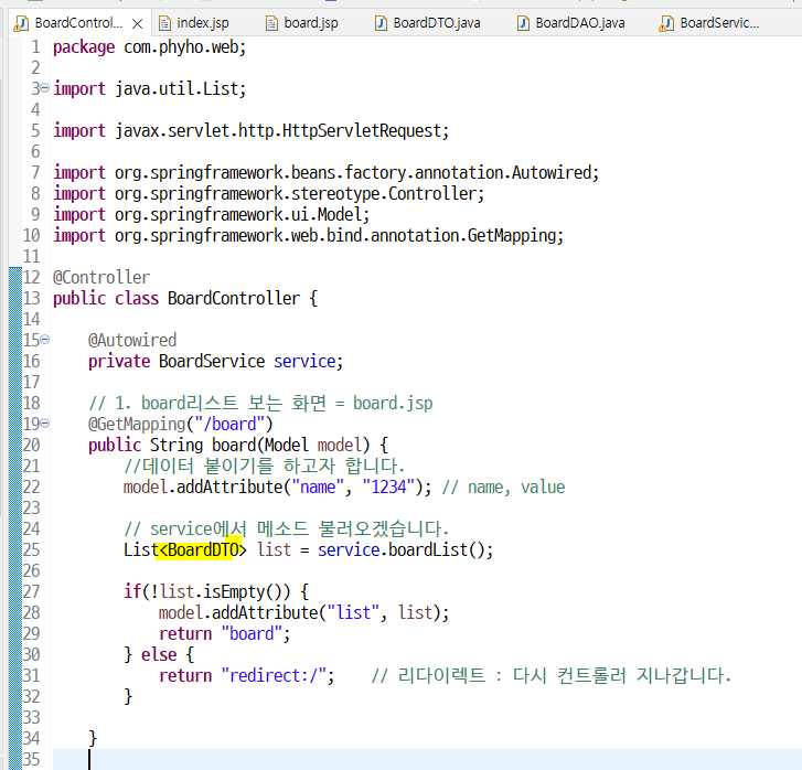 그전에 list타입을 Integer => BoardDTO로 바꿔줌