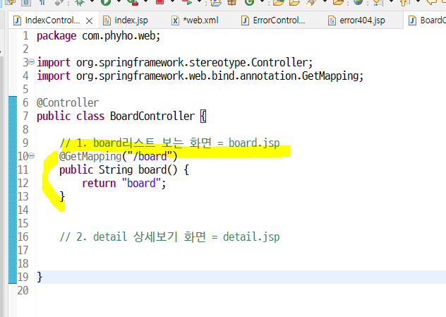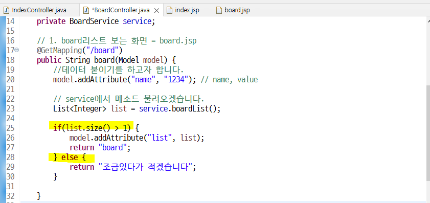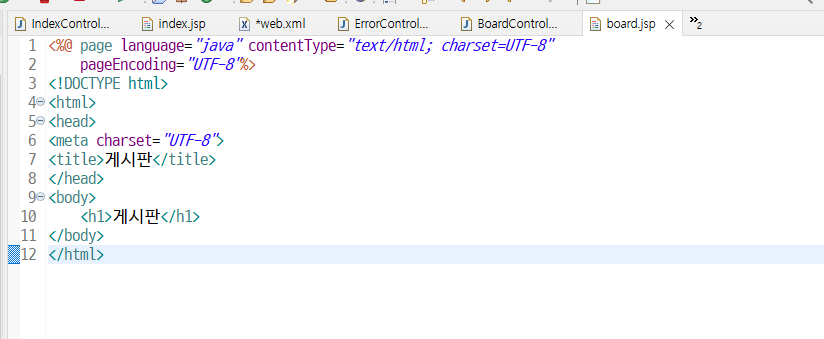 그럼 첫화면( index.jsp) 에서 게시판 링크를 누르면