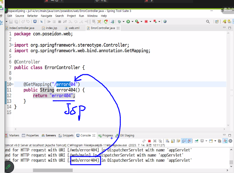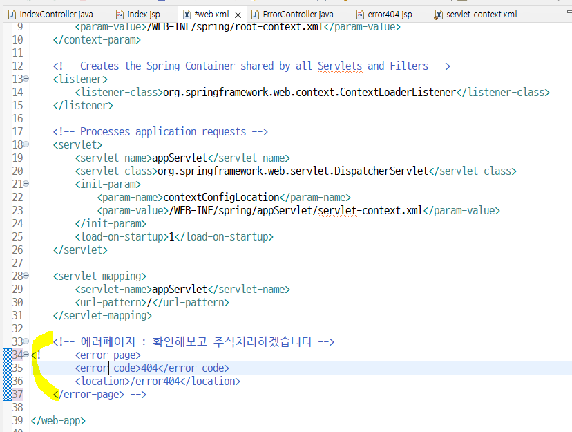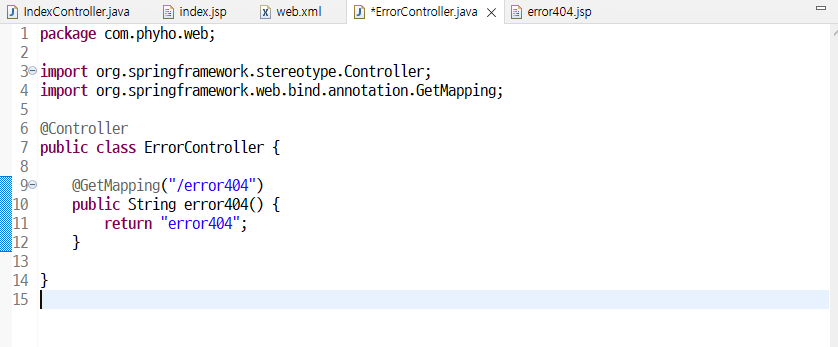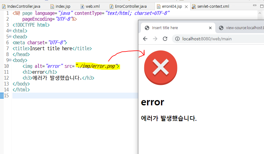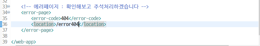 404에러가 뜬다면 '/error404' 요기 위치로 이동 => '/error404' 요청이 들어오면 error404.jsp 리턴