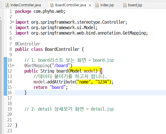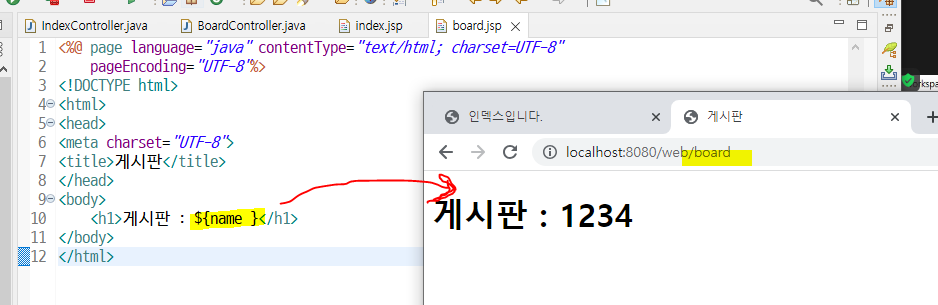 board.jsp 에서 "name"을 찍으면 1234가 나옴