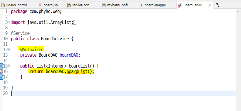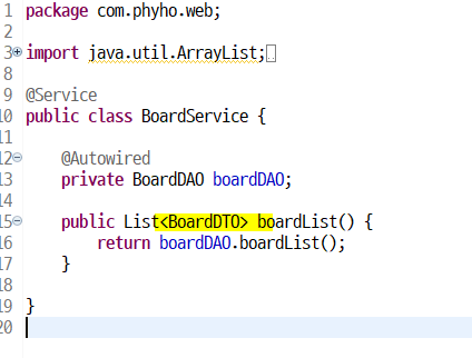 이제 BoardService 에 boardList() 메소드생성