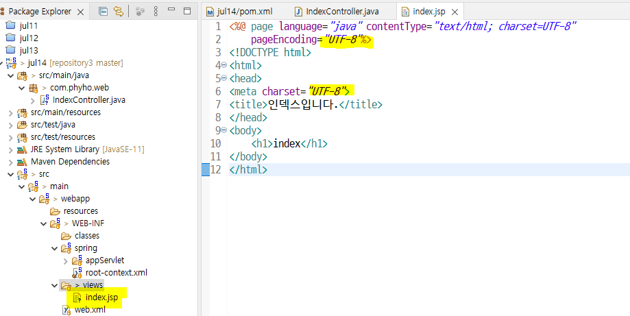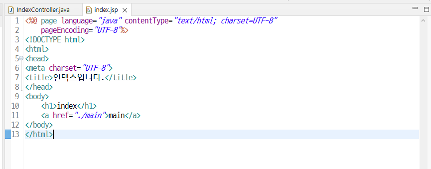 [ index.jsp ] 생성 (UTF-8은 미리 해줬으니 잘 설정되어있음)