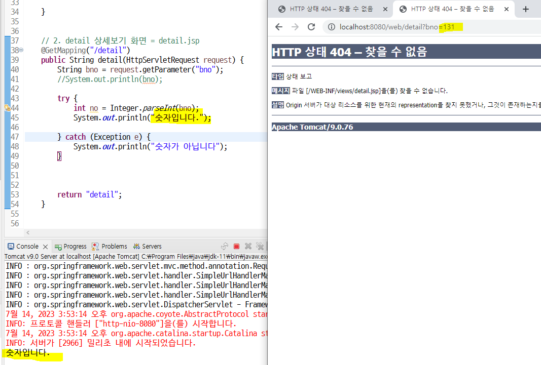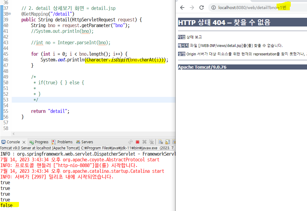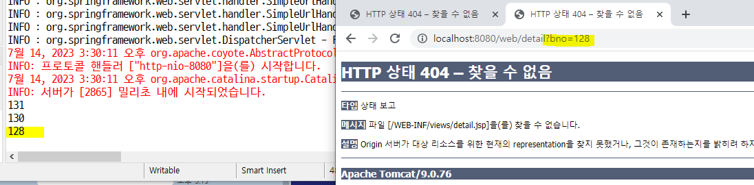 => 주소창 bno에 '1번' 이라고 입력해보면