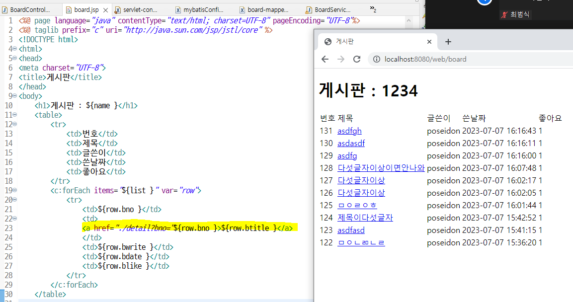 board.jsp 화면으로 넘어가서 아래처럼 뜸