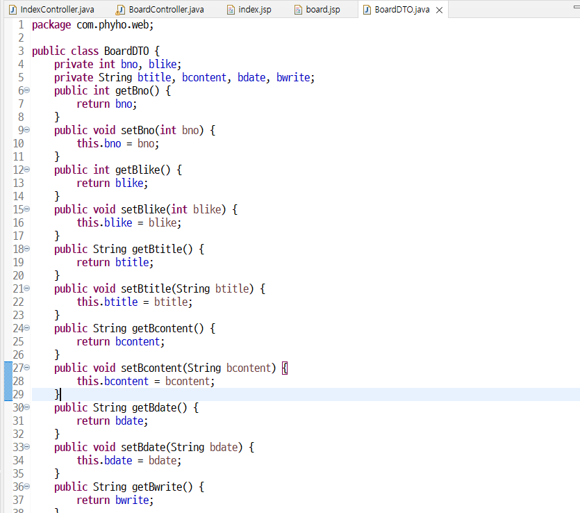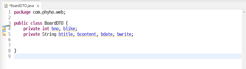 [ BoardDTO.java ] 클래스 생성 & 게시판 필드들 변수선언