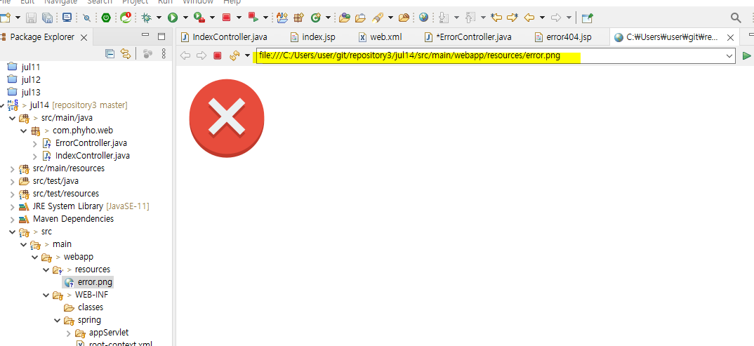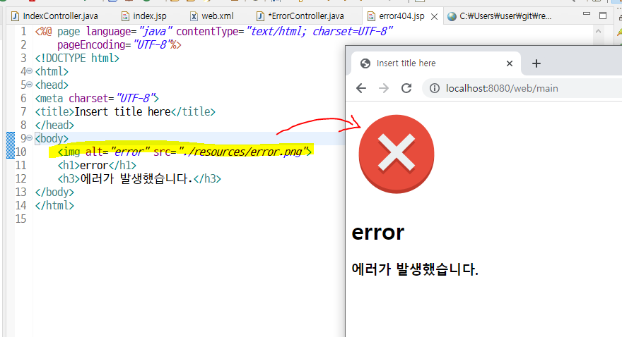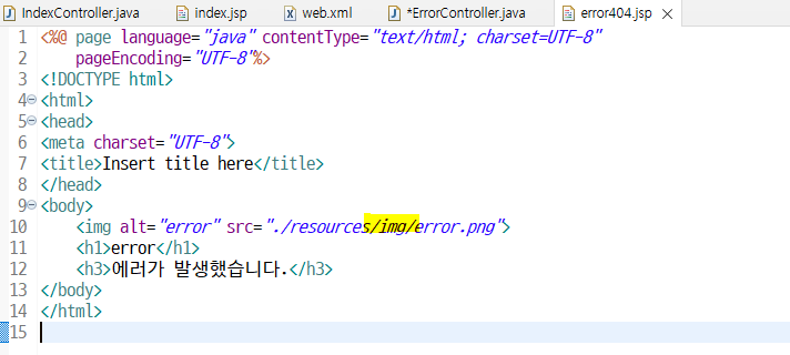 [ error404.jsp ] 에서 resources 까지 안써줘도 알아서 경로를 잘 찾아감.