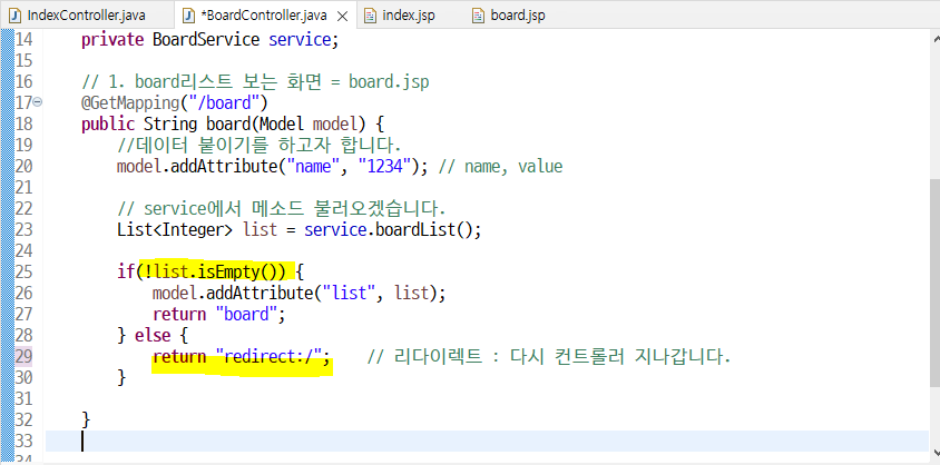 list가 비어있지 않다면, board.jsp 로 이동