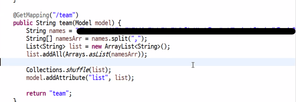 일처리 결과값인 list는 addAttribute () 메소드를 사용해서