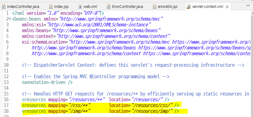 [ servlet-context.xml ] 에서 아래처럼 resources 경로 설정해주면