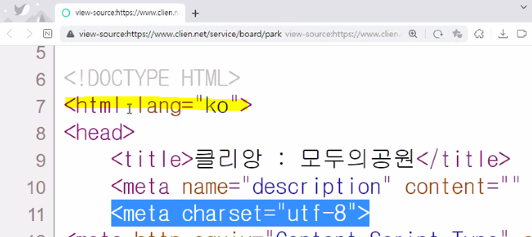 한글사용하겠다고 <html lang = "ko"> 라고 선언하기도 함 (생략가능)