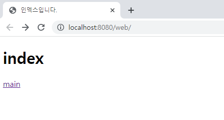 이제 첫화면에서 main 클릭해서 이동해보면 (404오류가 뜨니까)