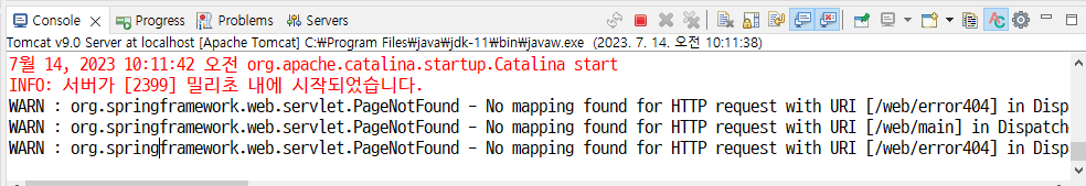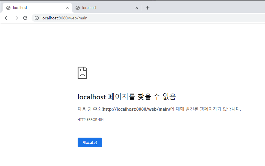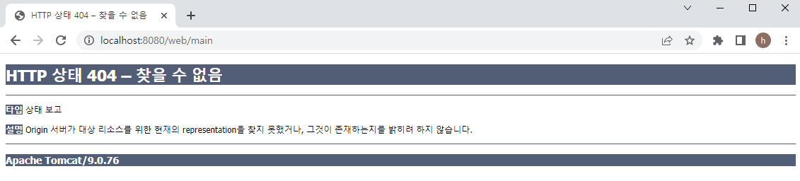 눌러보면 연결은 안됨 (404 에러화면 뜸) _ main.jsp 파일이 없으니까