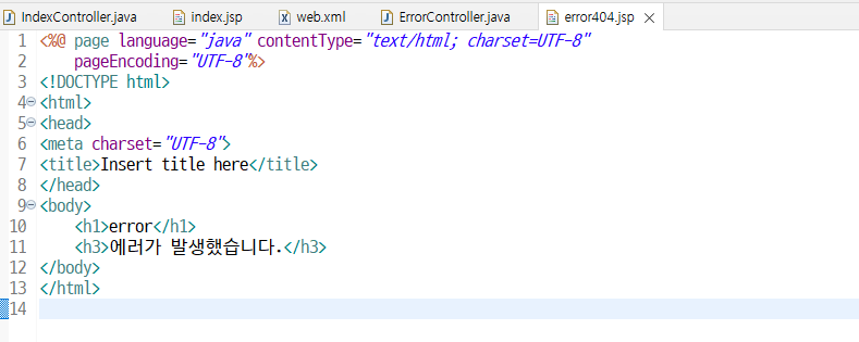 이제 404에러를 위한 페이지인 error404 페이지(error404.jsp파일)를 만들어보자