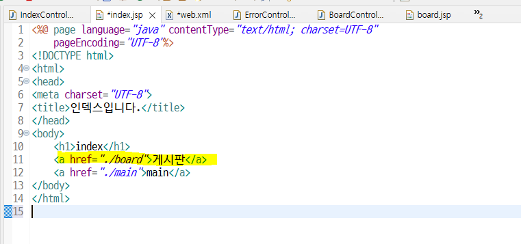 index.jsp 에서 board.jsp로 연결하는 게시판 (a링크) 만들어주기