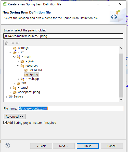 src/main/resource 아래에 spring 폴더 생성