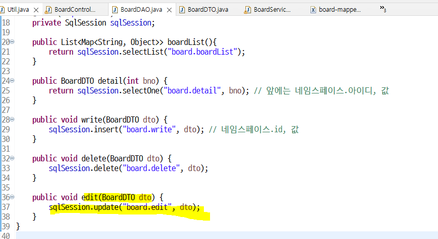 DAO에서는 이제 마지막으로 mapper에게 명령문 실행시켜