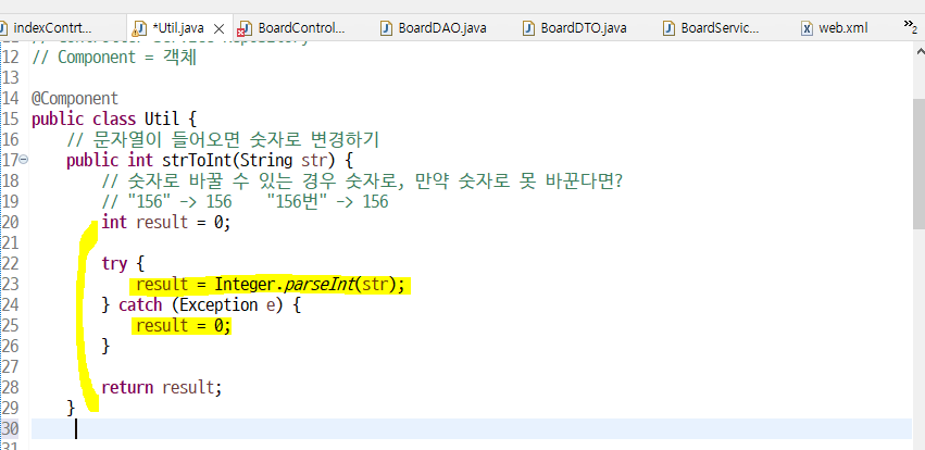 Util 로 가서 bno 타입을 int로 바꿔줄 strToInt () 메소드 생성