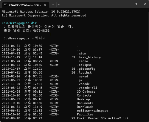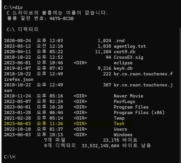 > dir 확인해보면 파일 생성됨.