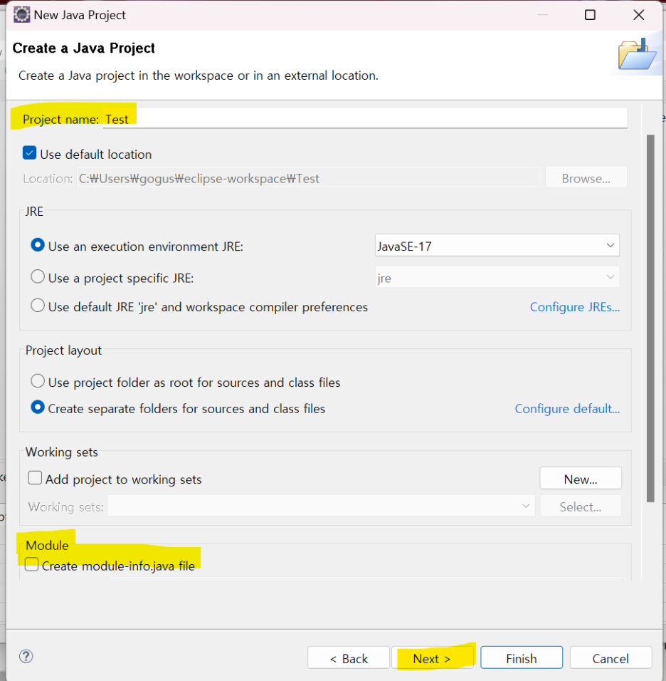Module - 'Creat module-info.java file' 체크해제