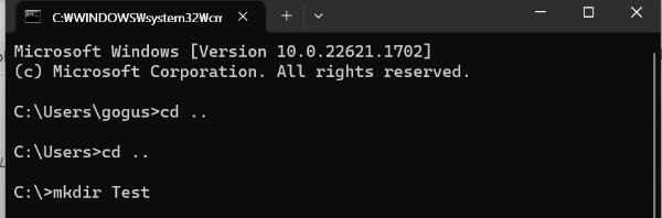 C:\workspace 폴더에 Test 폴더 생성된거 확인가능
