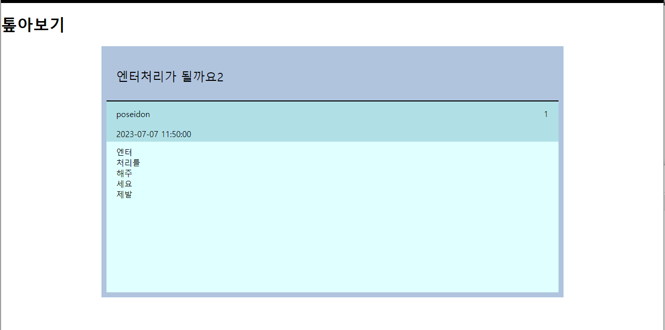 게시판-글쓰기창에서 글을 써보면 엔터가 적용이 안됨!