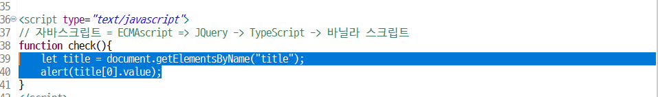 버튼을 누르면 check() 라는 함수가 실행!