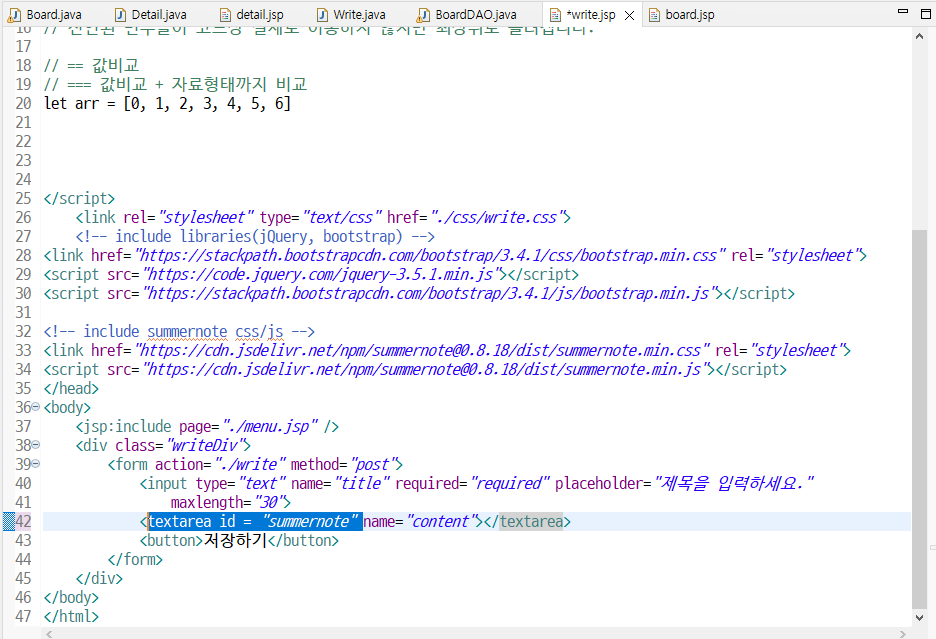 * textarea.focus(); 작동 안하는 이유 => 이거는 summernote 때문