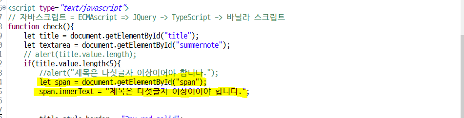 alert("제목은 다섯글자 이상이어야 합니다.");